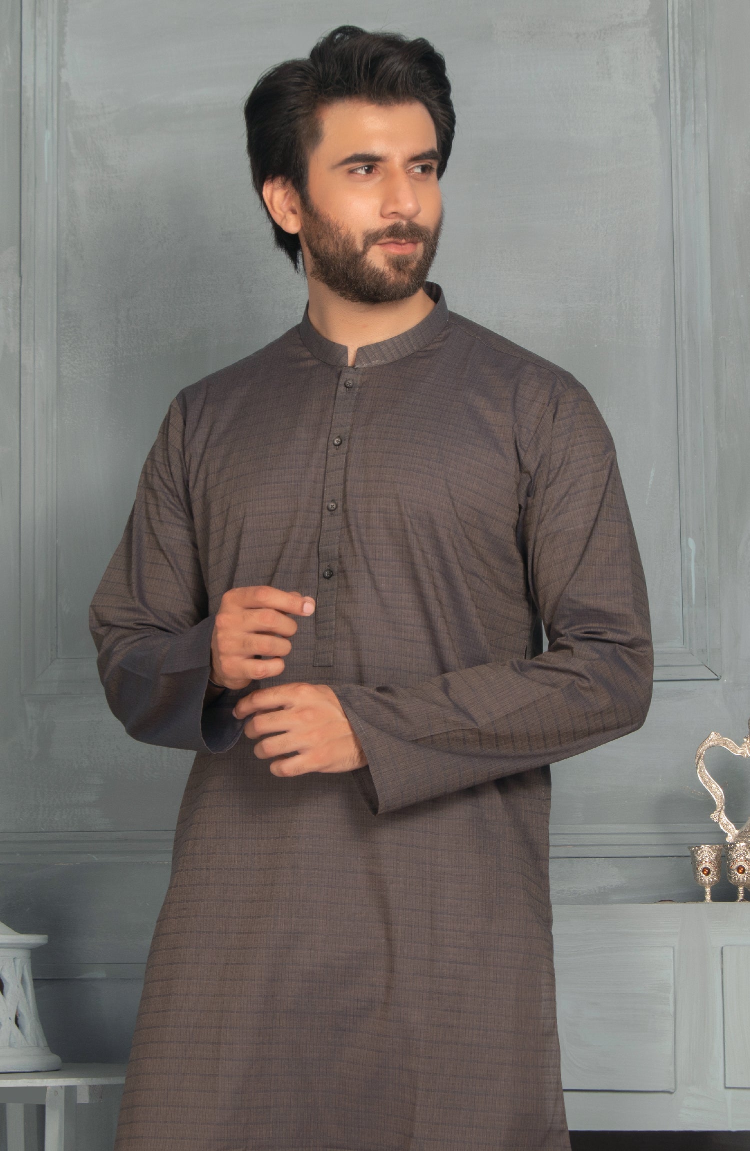 MEN KURTA PLAIN BLACK (6977960378542)