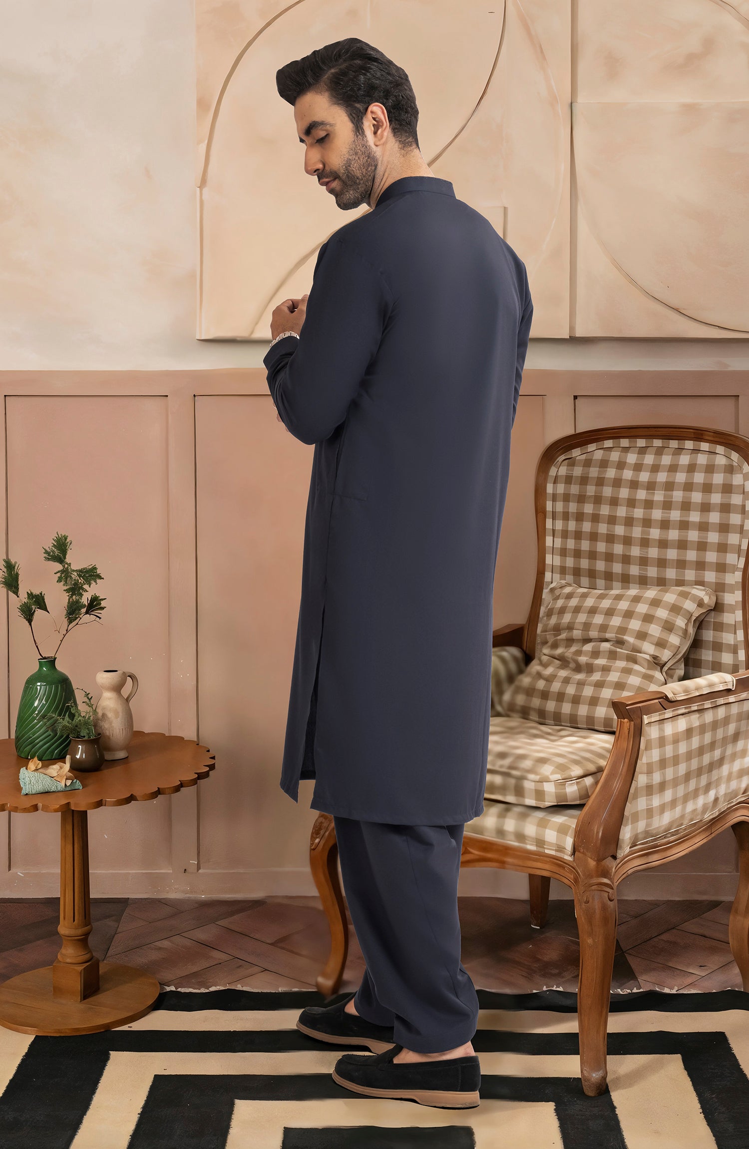 NAVY BLENDED EMBROIDERED KAMEEZ SHALWAR