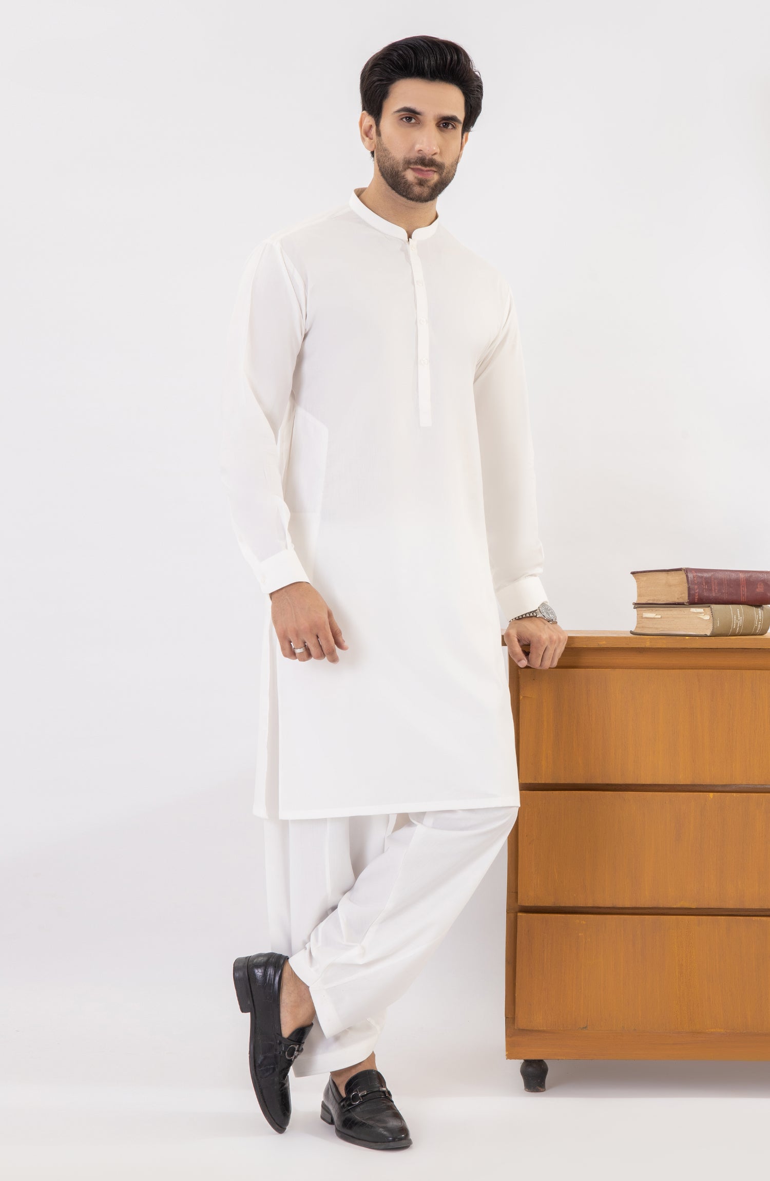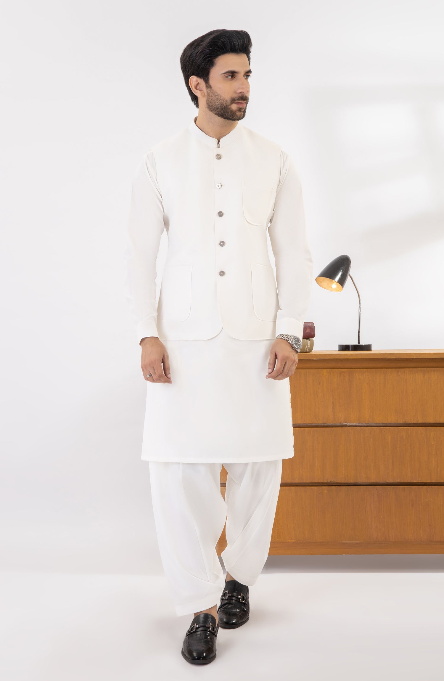 Blended fabric kurta shalwar with an amazing soft and flowy feel and solid color tones, paired with a classy Waistcoat made of Suiting Fabric with slub texture on it, a perfect combination for every occasion whether it’s a formal event, wedding, or festive occasion.