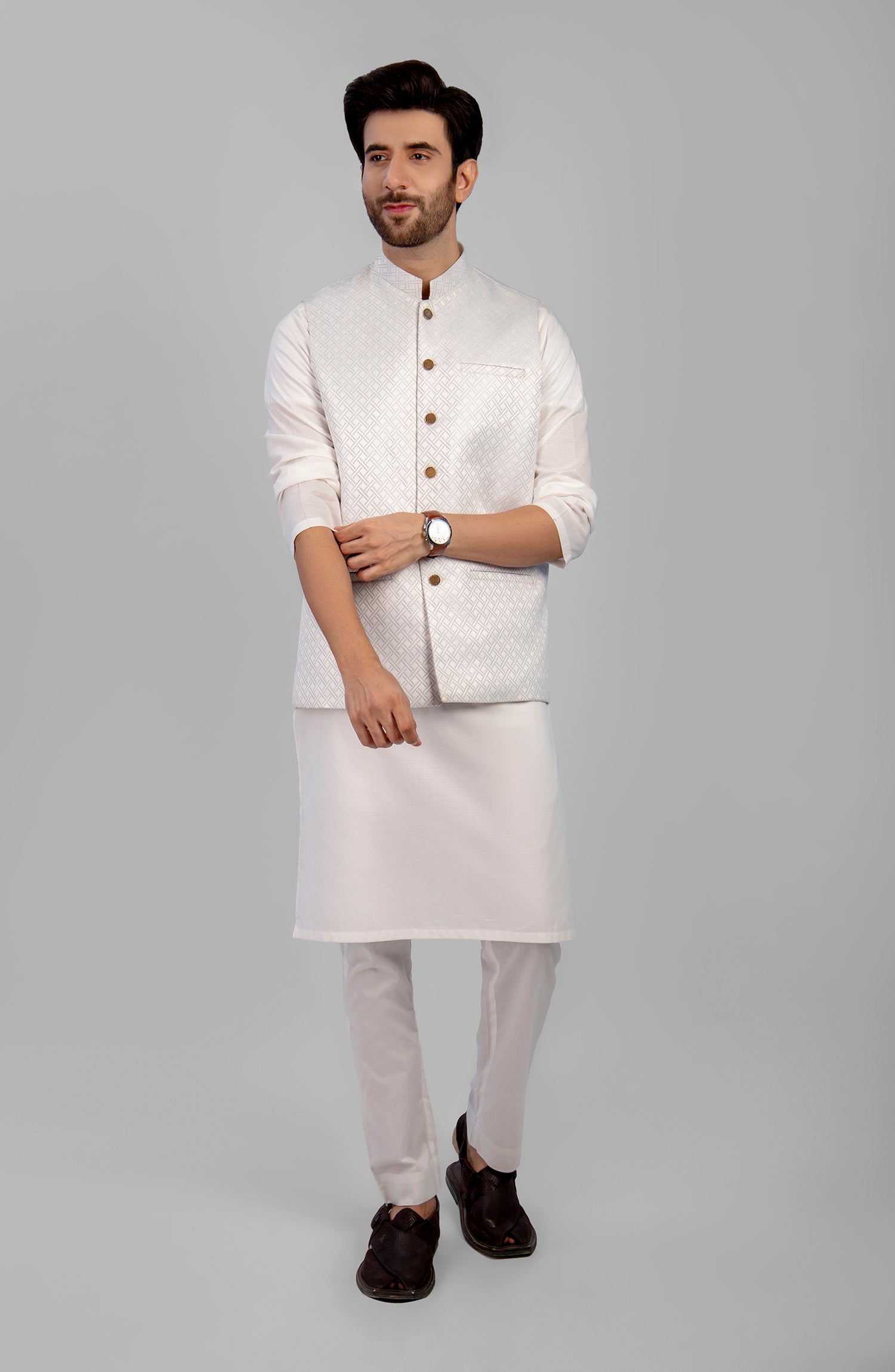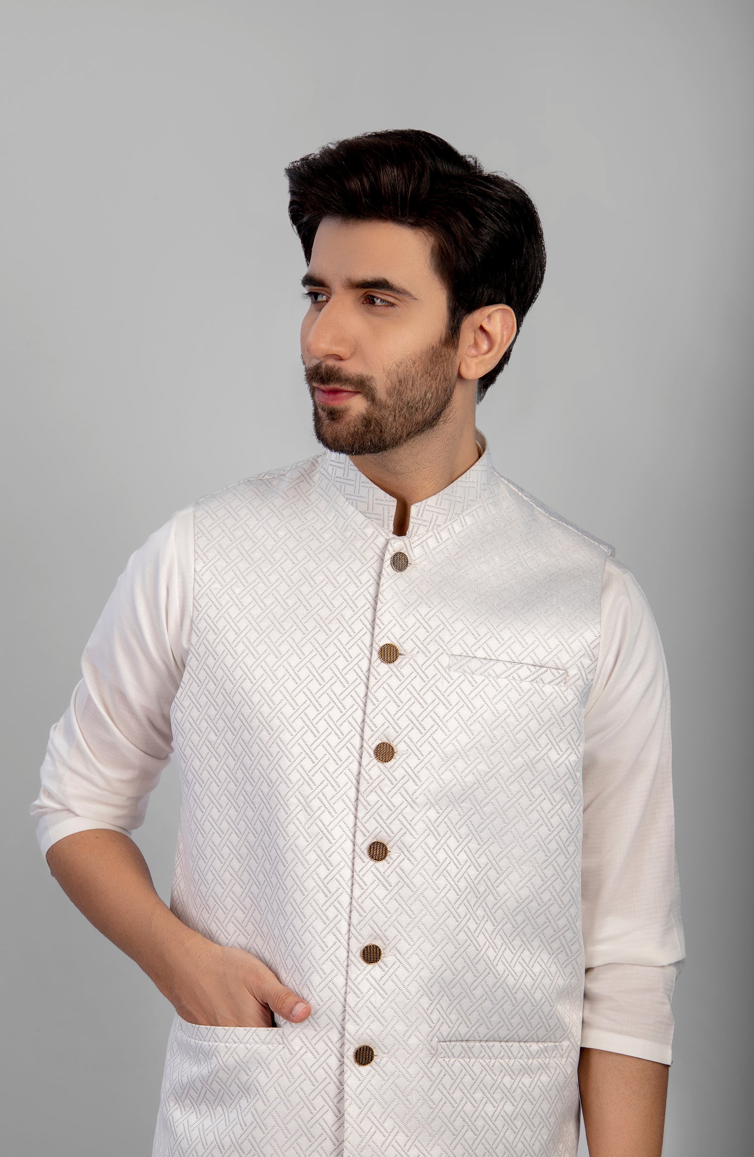 PRE WINTER'23 MEN WAISTCOAT PLAIN OFF WHITE