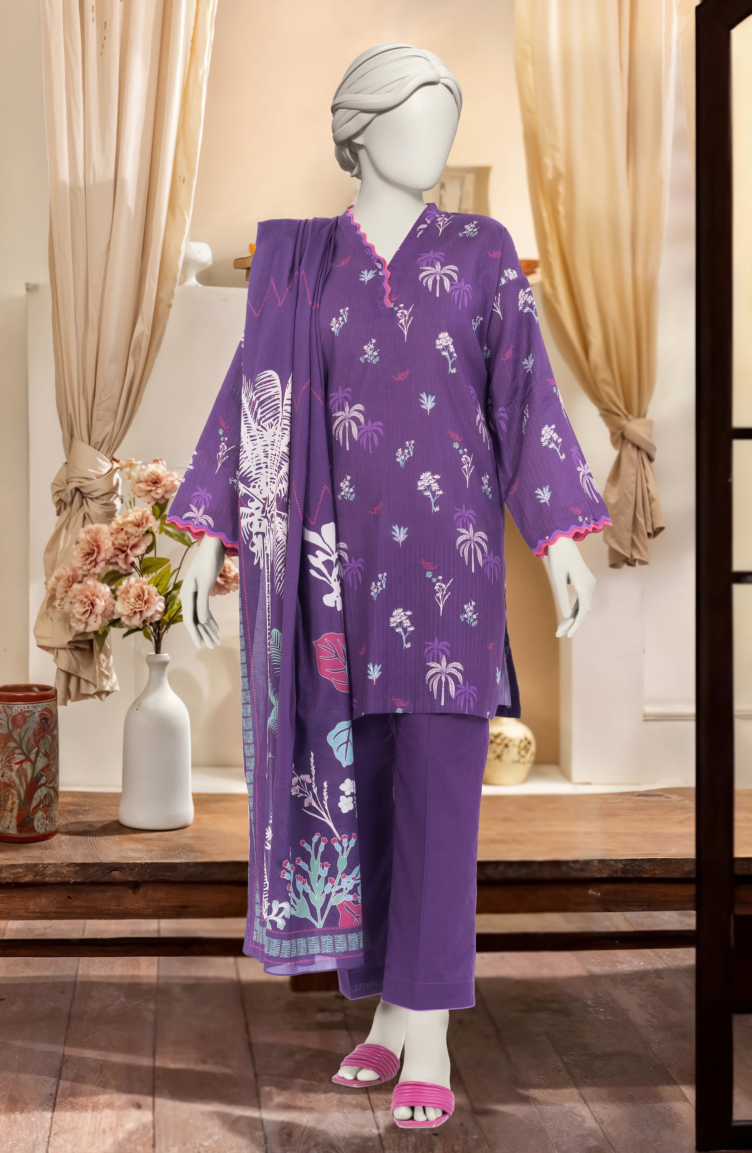 PRINTED TEXTURED CAMBRIC 3PCS UNSTITCHED