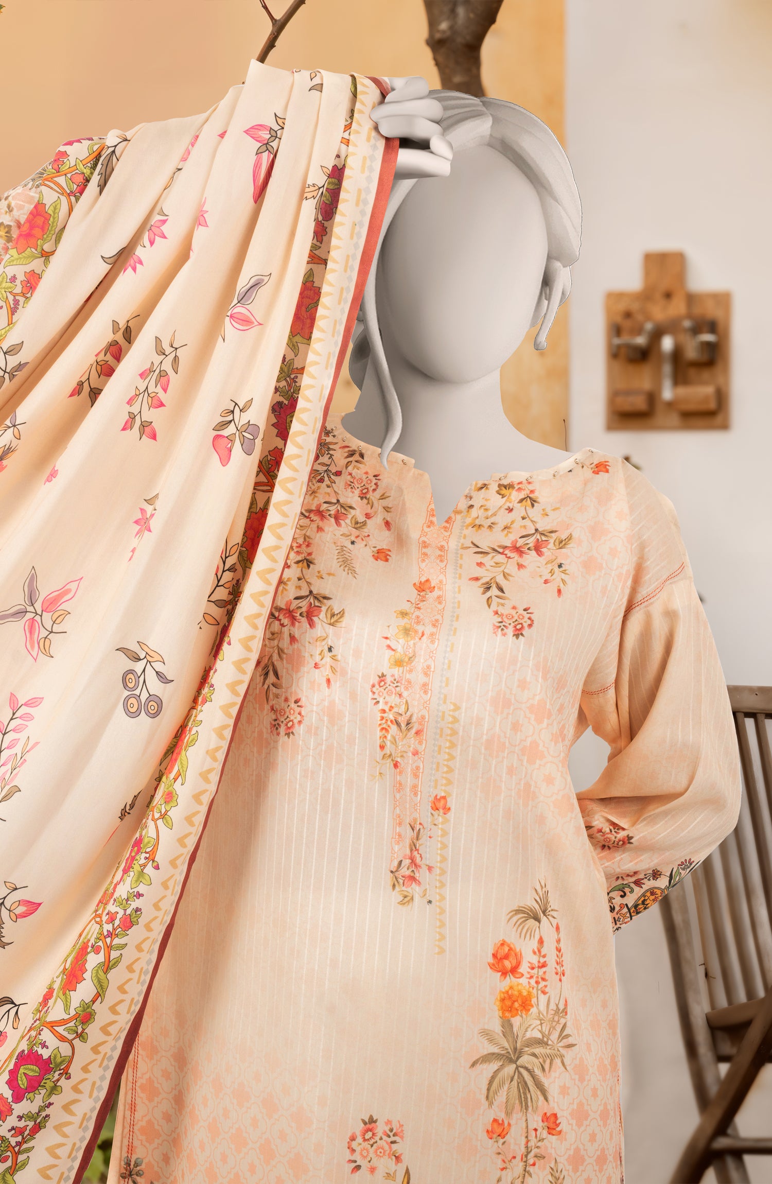 PRINTED TEXTURED VISCOSE 3PCS UNSTITCHED