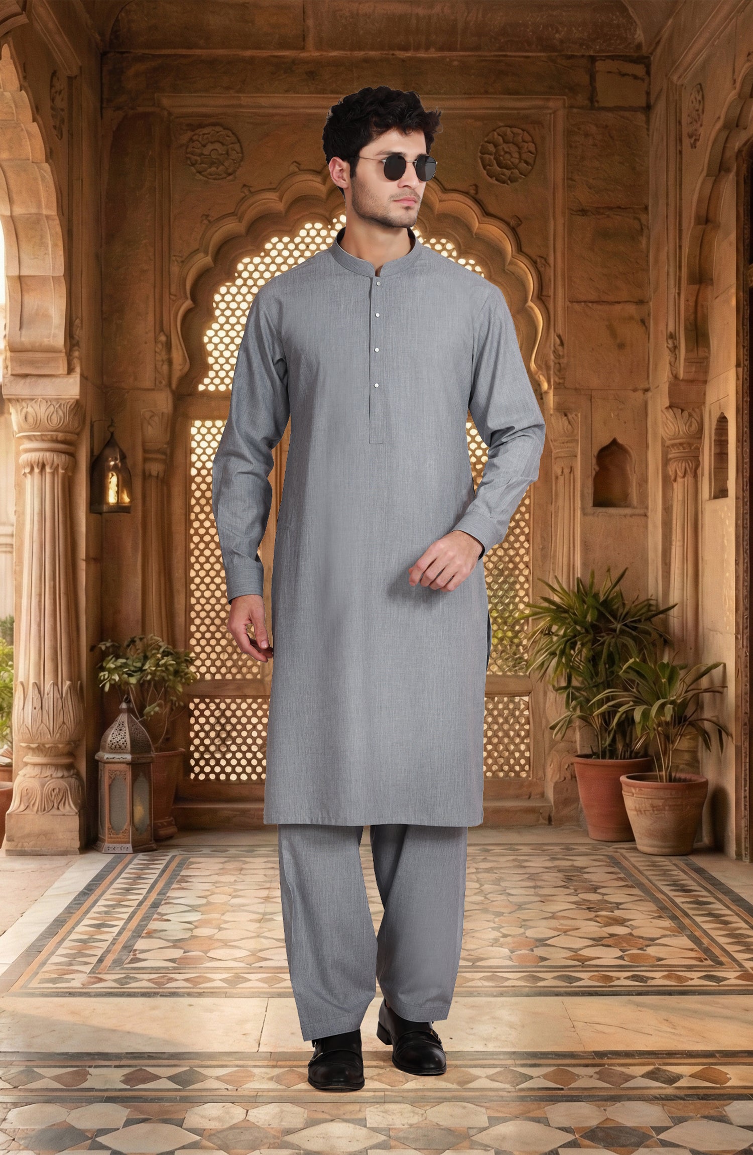 STONE-BLUE BLENDED KAMEEZ SHALWAR