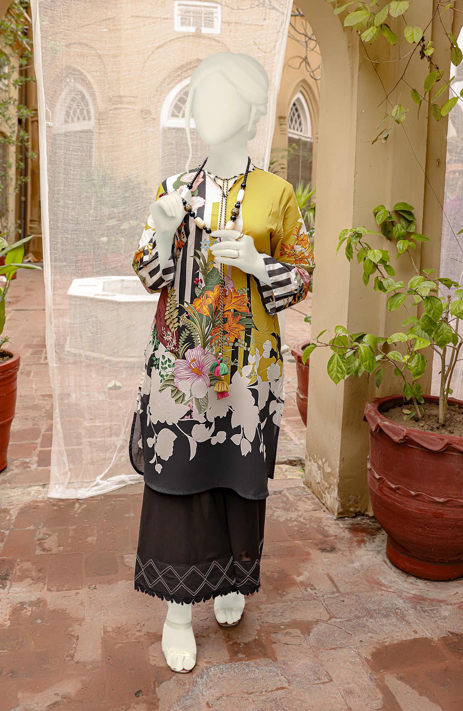 Neckline: Maghazi neckline with slit