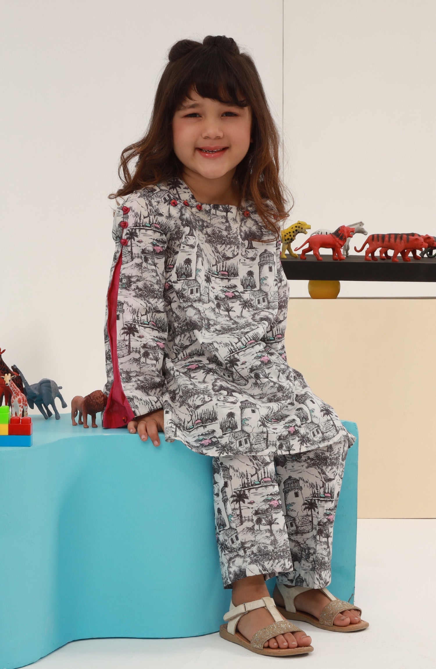 SUMMER'23 BASIC PRINTED GIRLS 2PC STITCHED SUIT