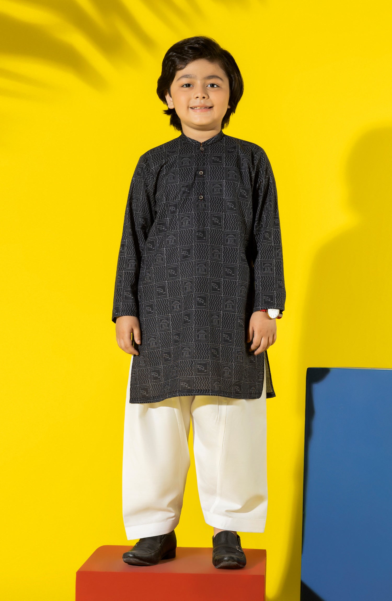 SUMMER'23 BOYS PRINTED KURTA BLACK
