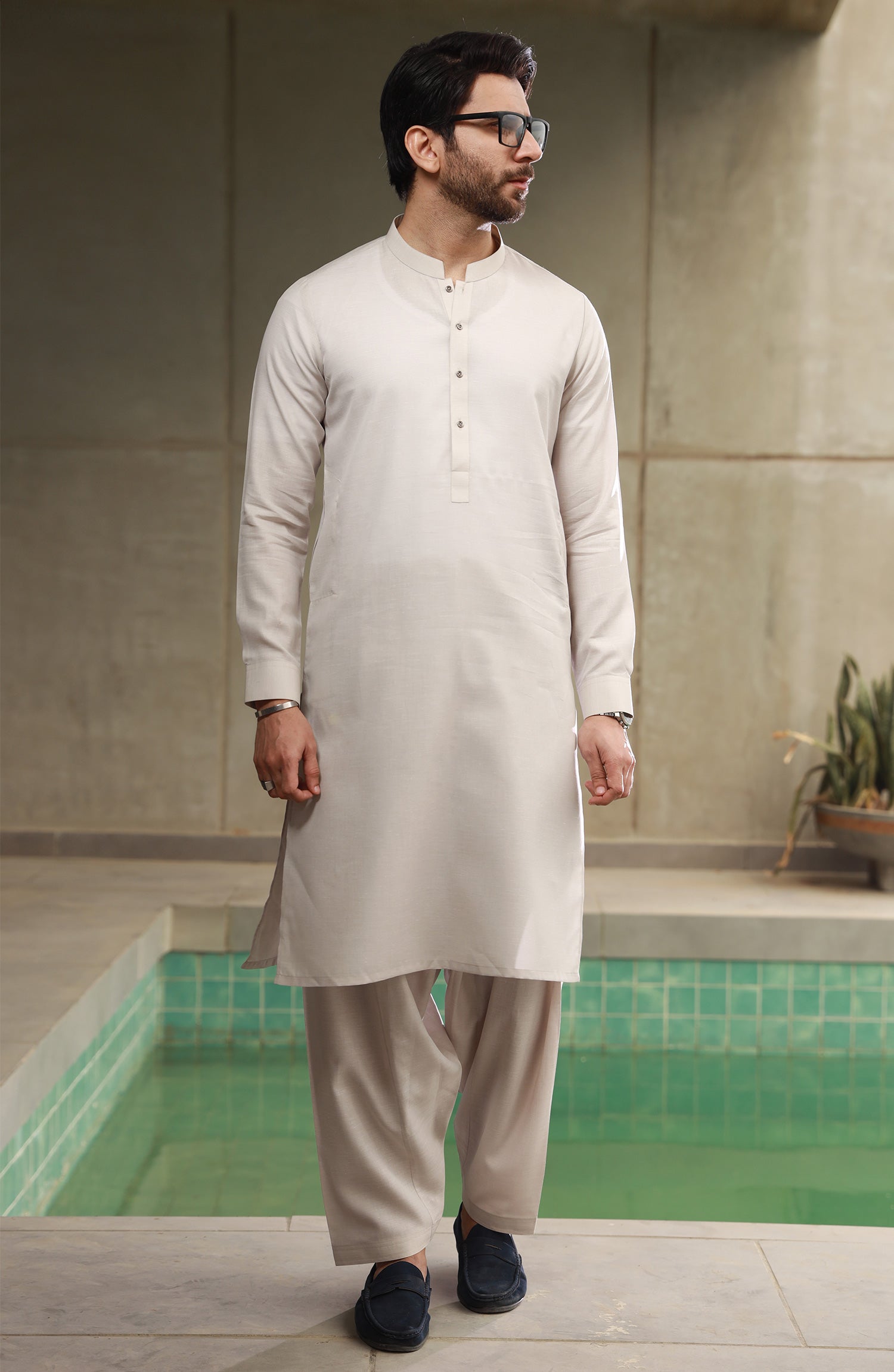 SUMMER'23 MEN KAMEEZ SHALWAR PLAIN LATTE