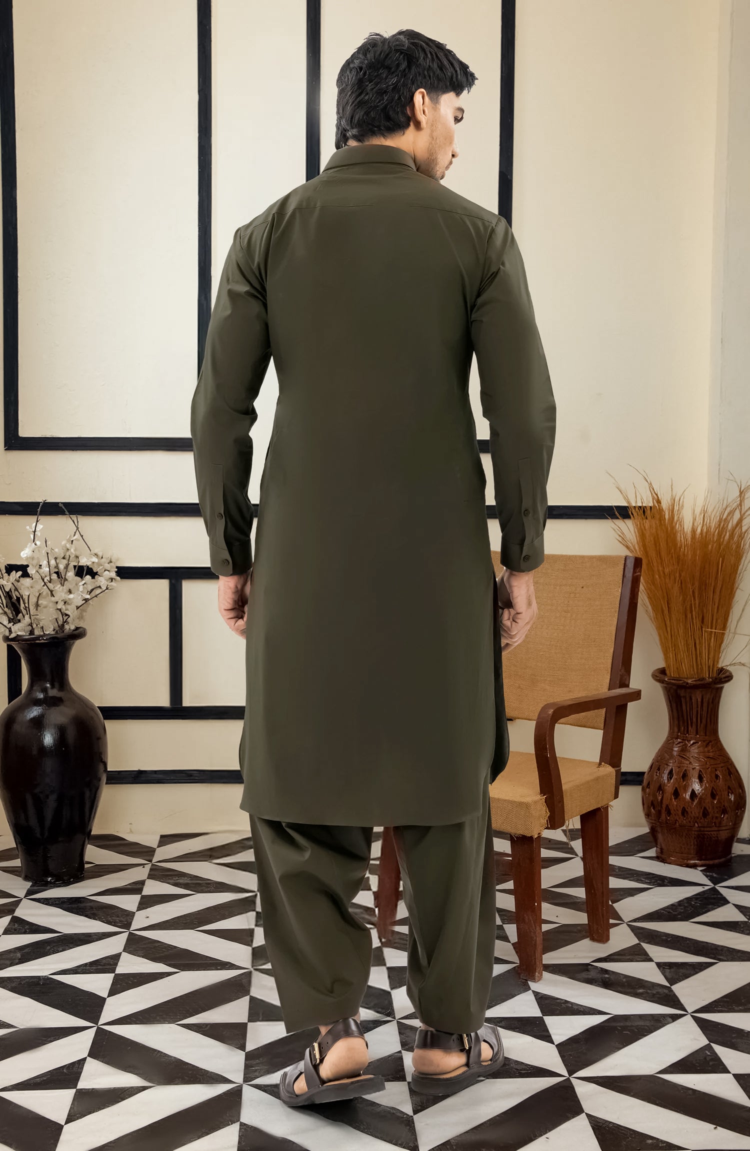 SUMMER'25 MEN KAMEEZ SHALWAR FOREST GREEN