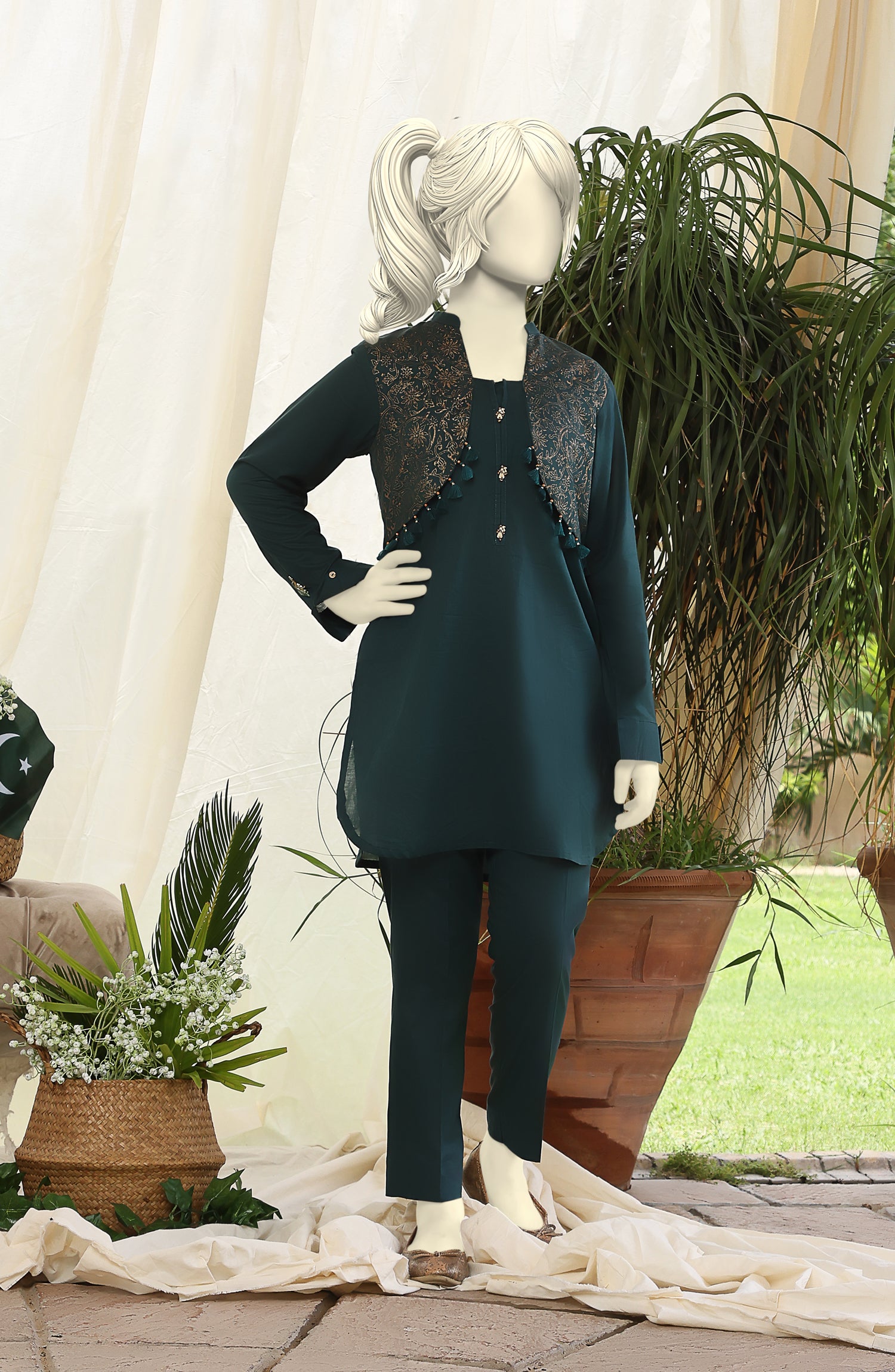Embellishment: Buttons on neckline & sleeve. Tassels on bolero jacket.