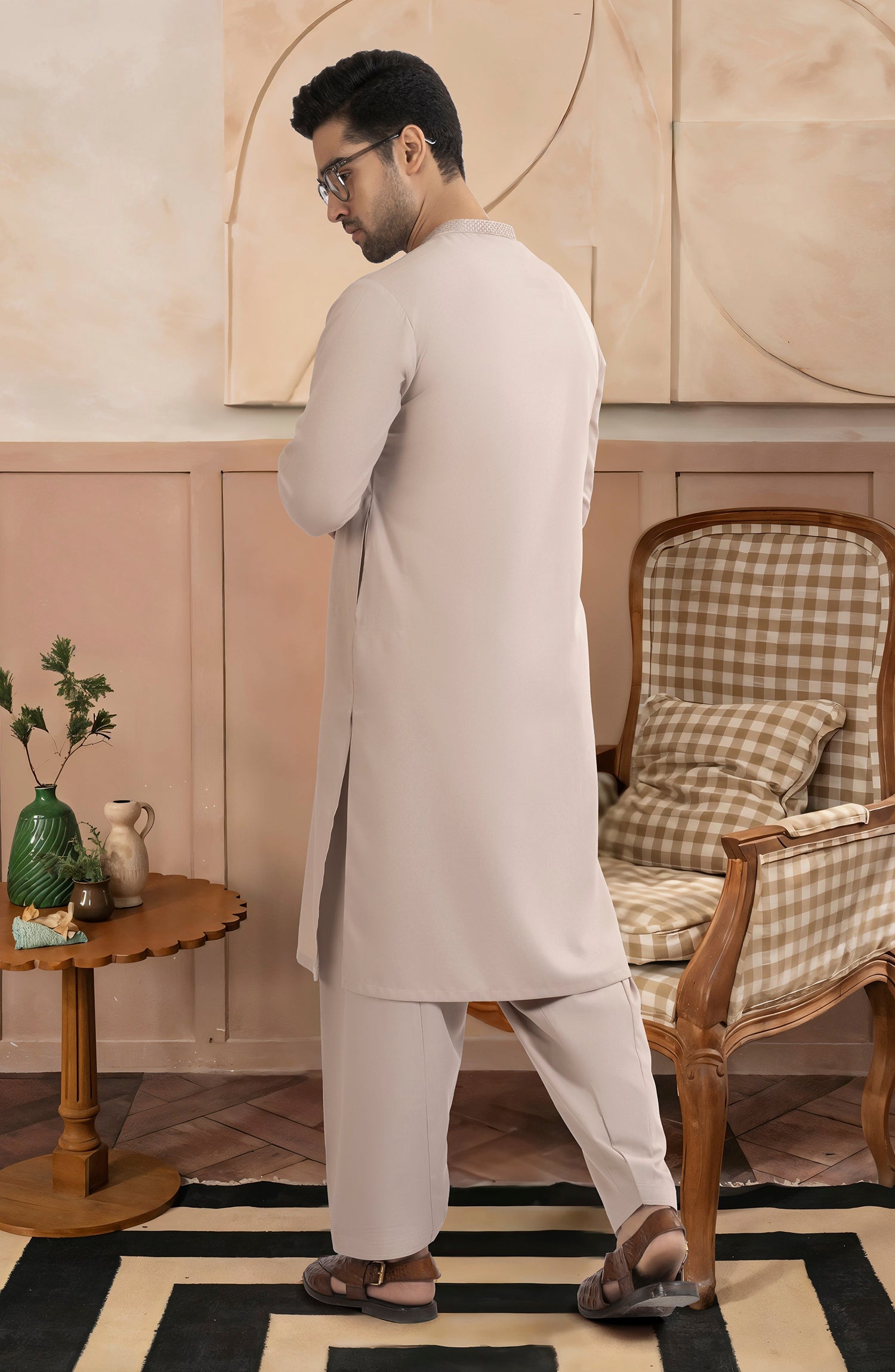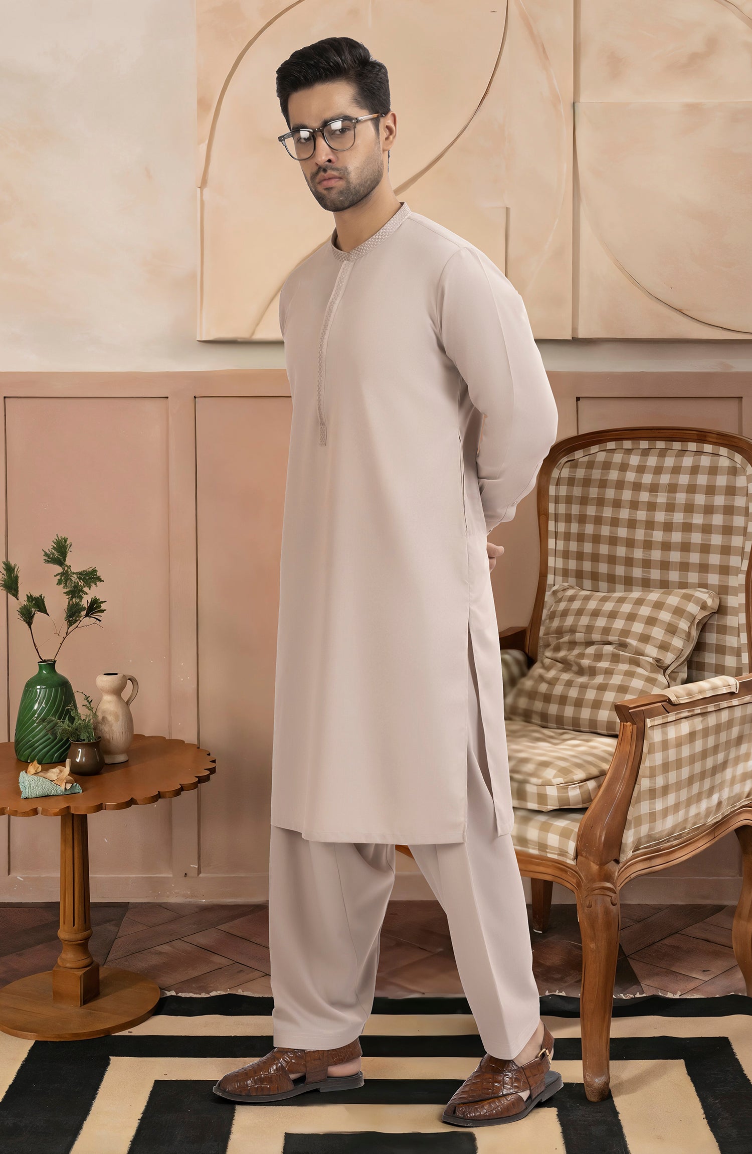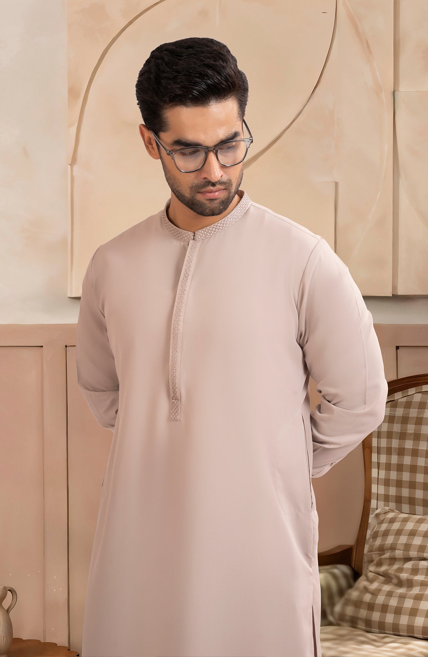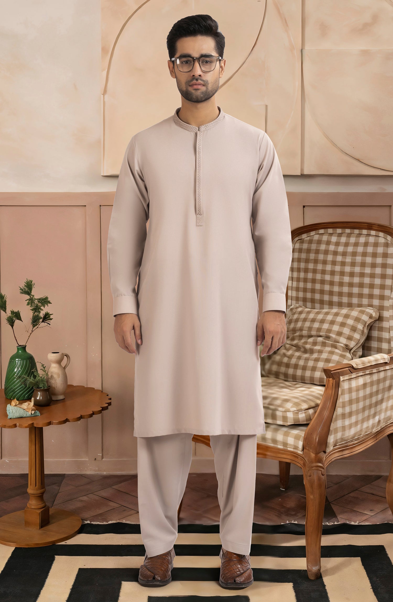 TEA-PNK BLENDED EMBROIDERED KAMEEZ SHALWAR