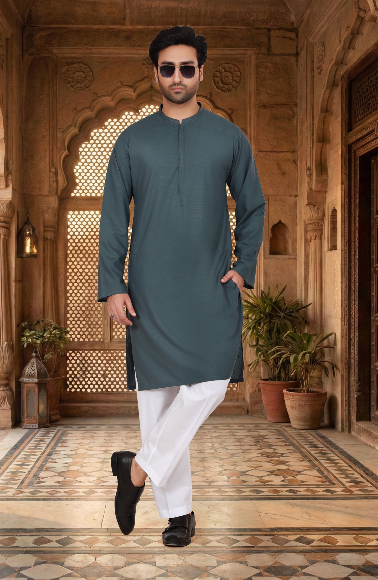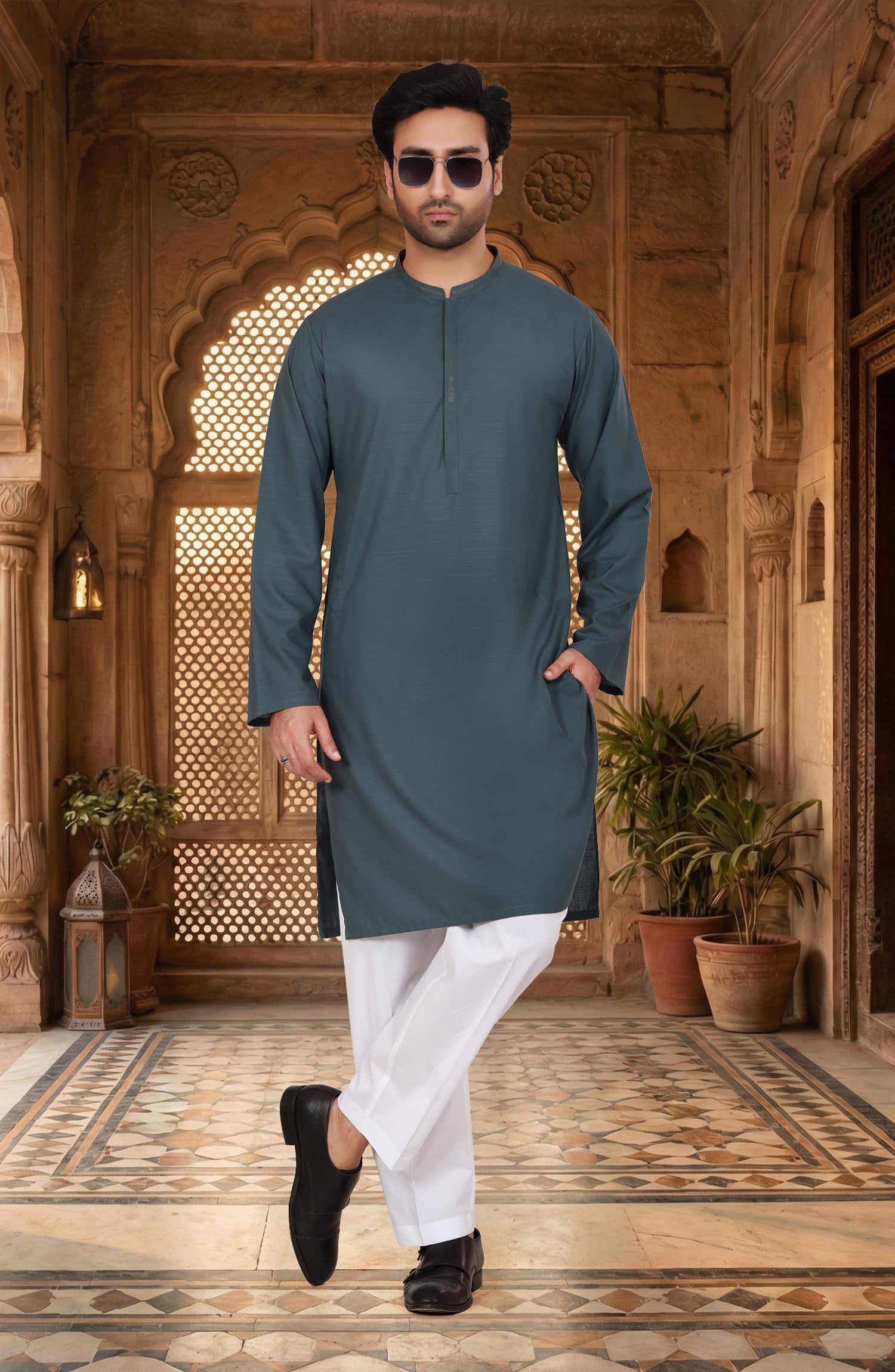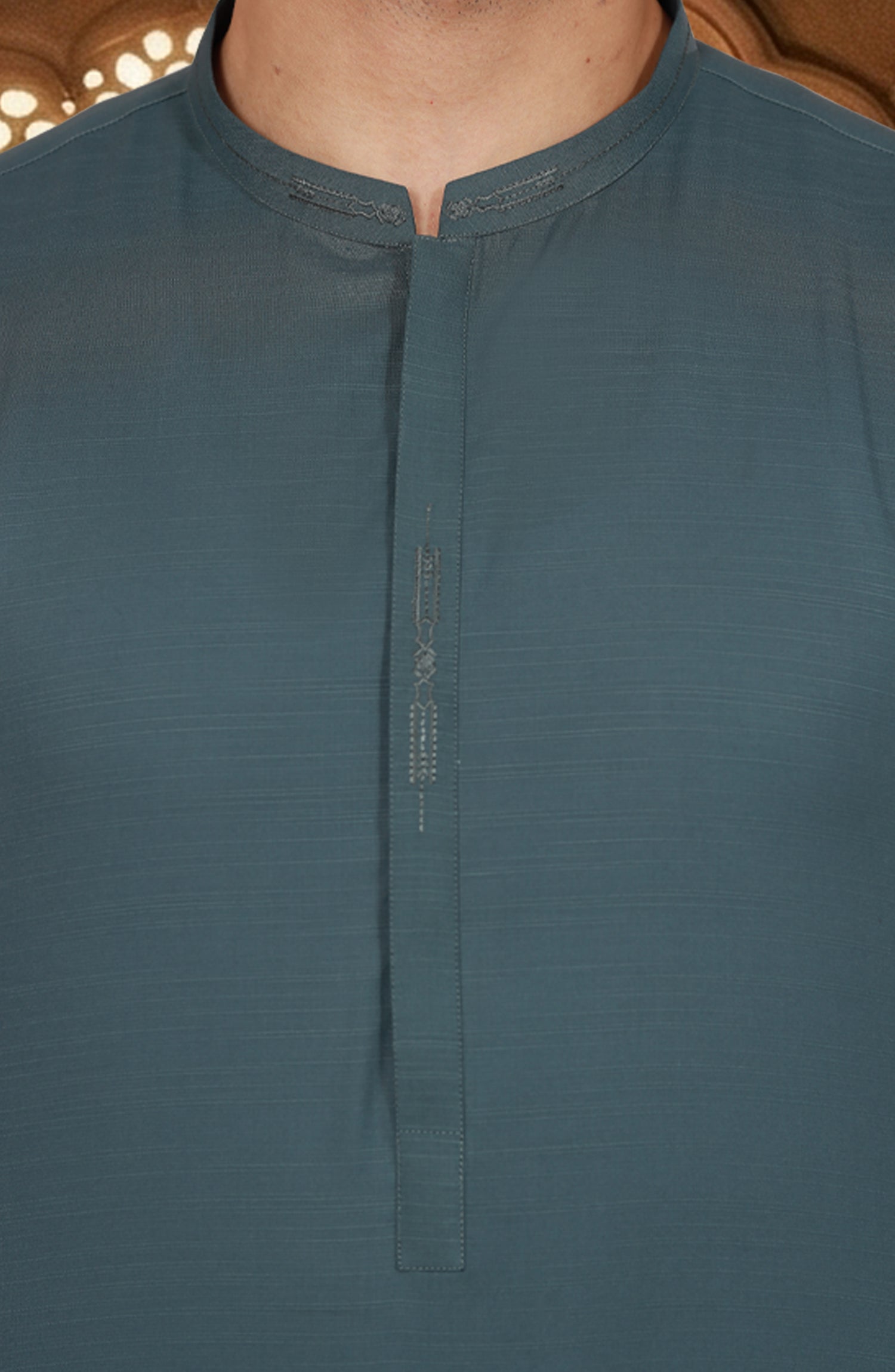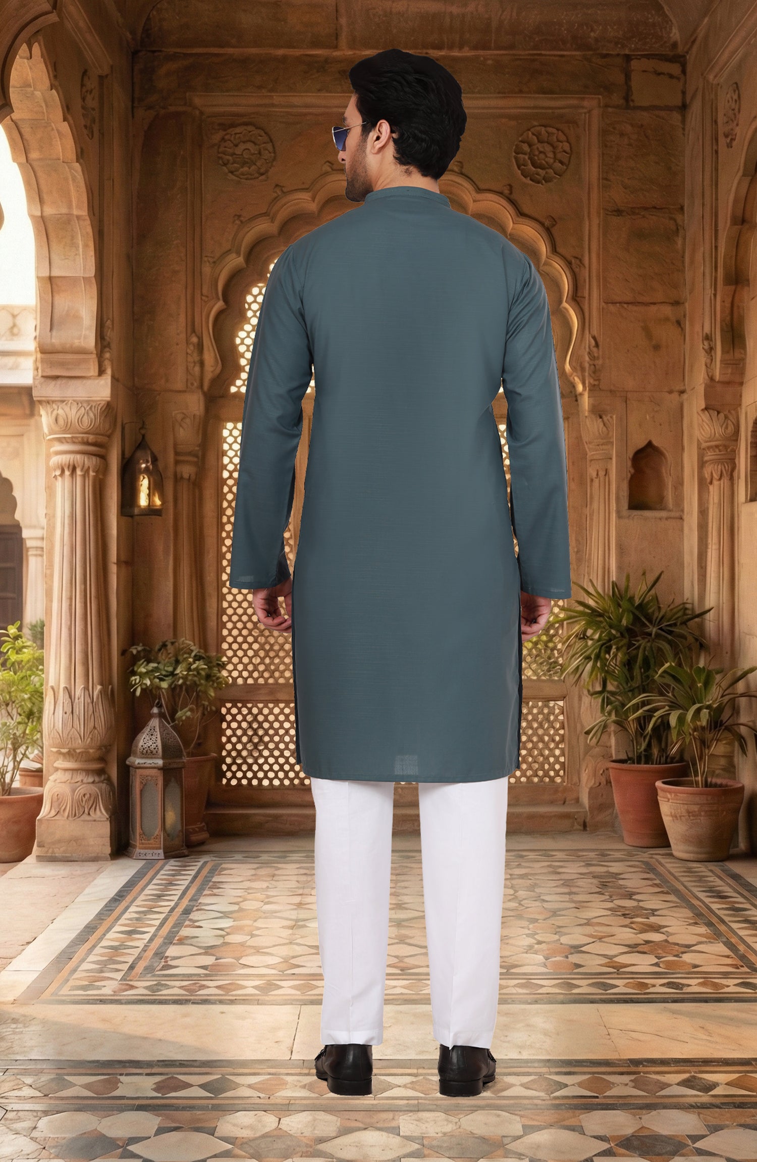 TEAL GREY BLENDED EMBROIDERED KURTA