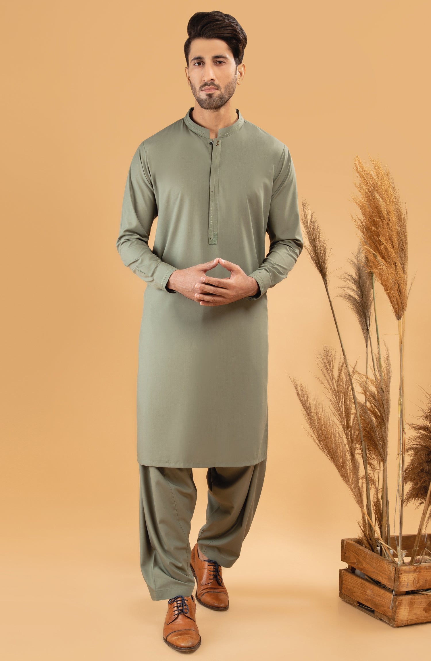 WINTER'22 MEN KAMEEZ SHALWAR CASUAL LIGHT GREEN