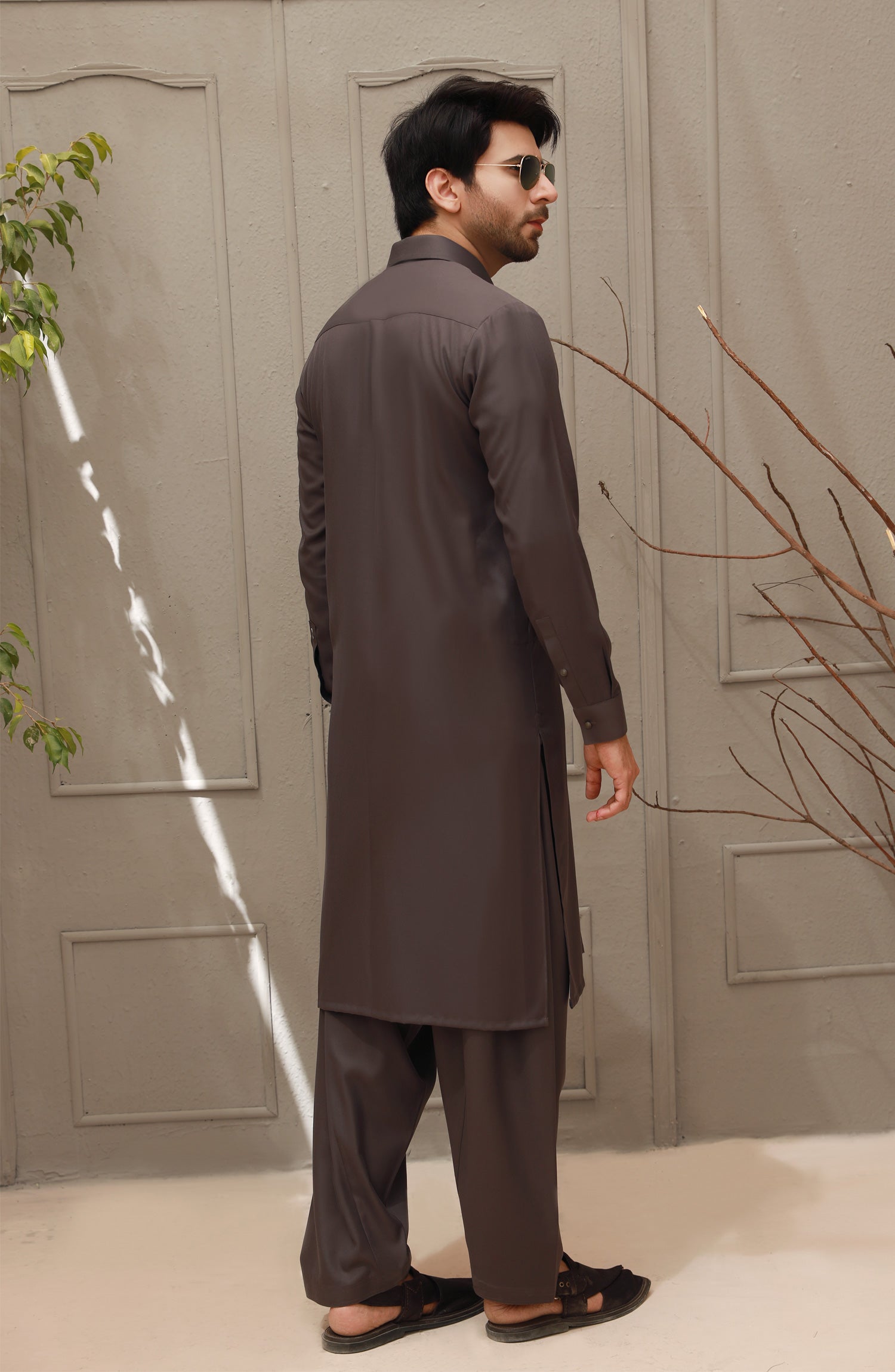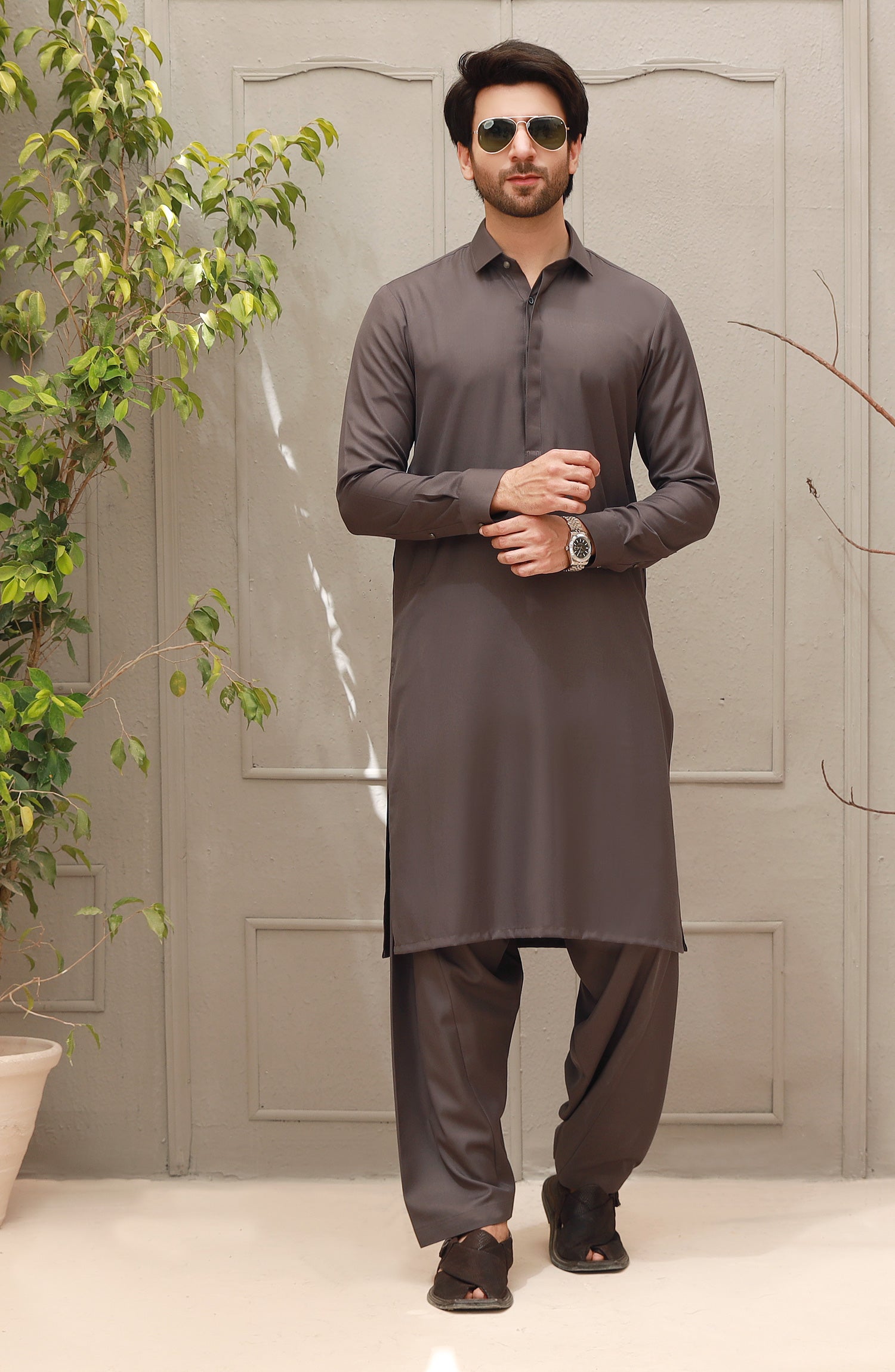 WINTER'22 MEN KAMEEZ SHALWAR PLAIN DARK GREY