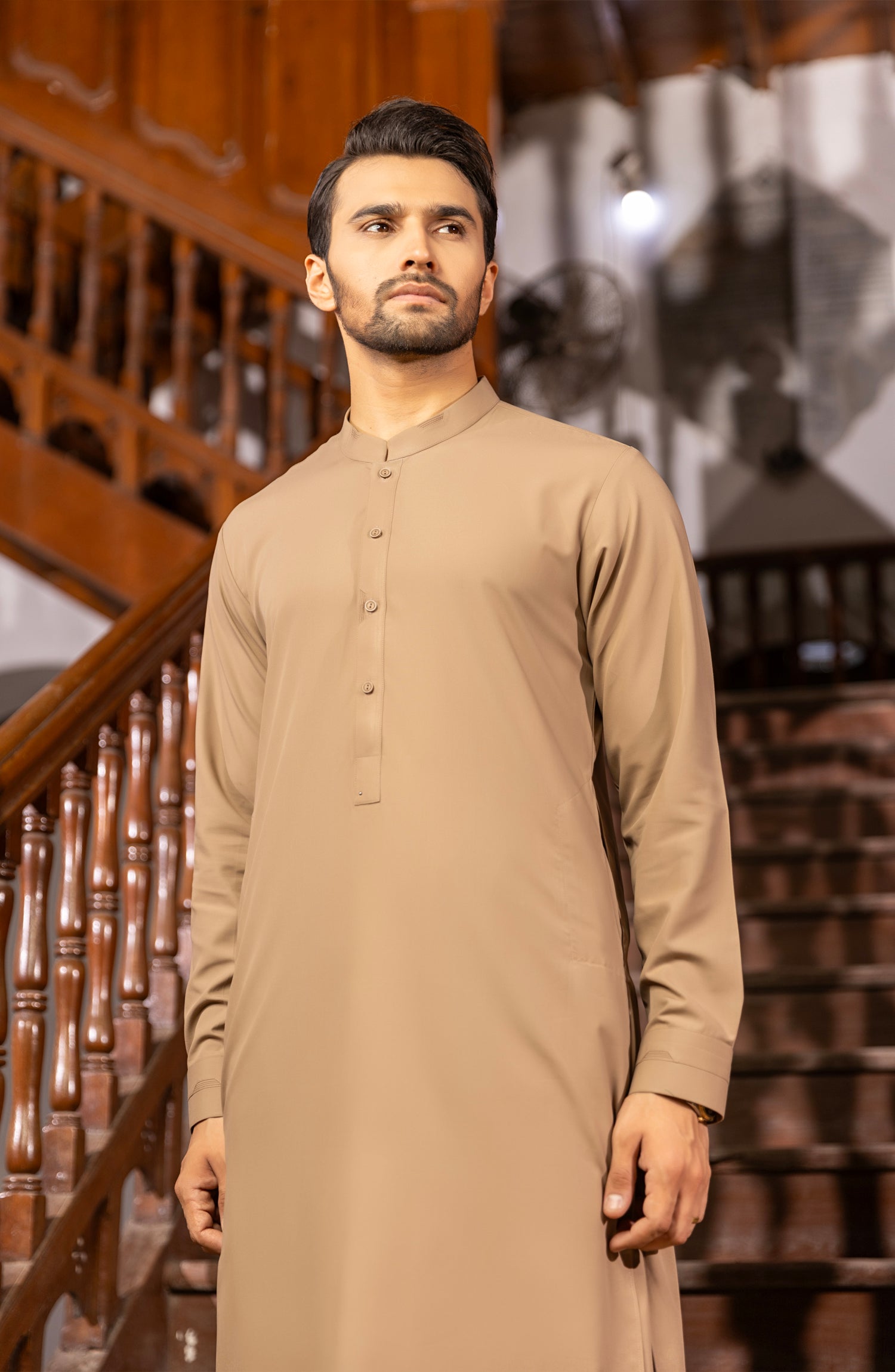A fusion of tradition and contemporary flair. This classic ensemble features a comfortable and well-tailored Kurta paired with Shalwar adorned with buttons for a touch of sophistication. Elevate your style with this subtle elegance.