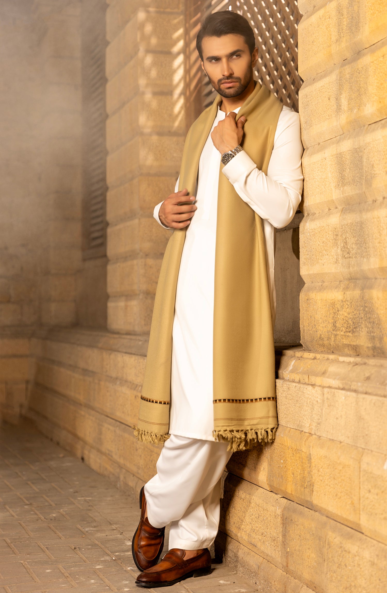 Twill Wool Fabric Shawl With Weaved Border