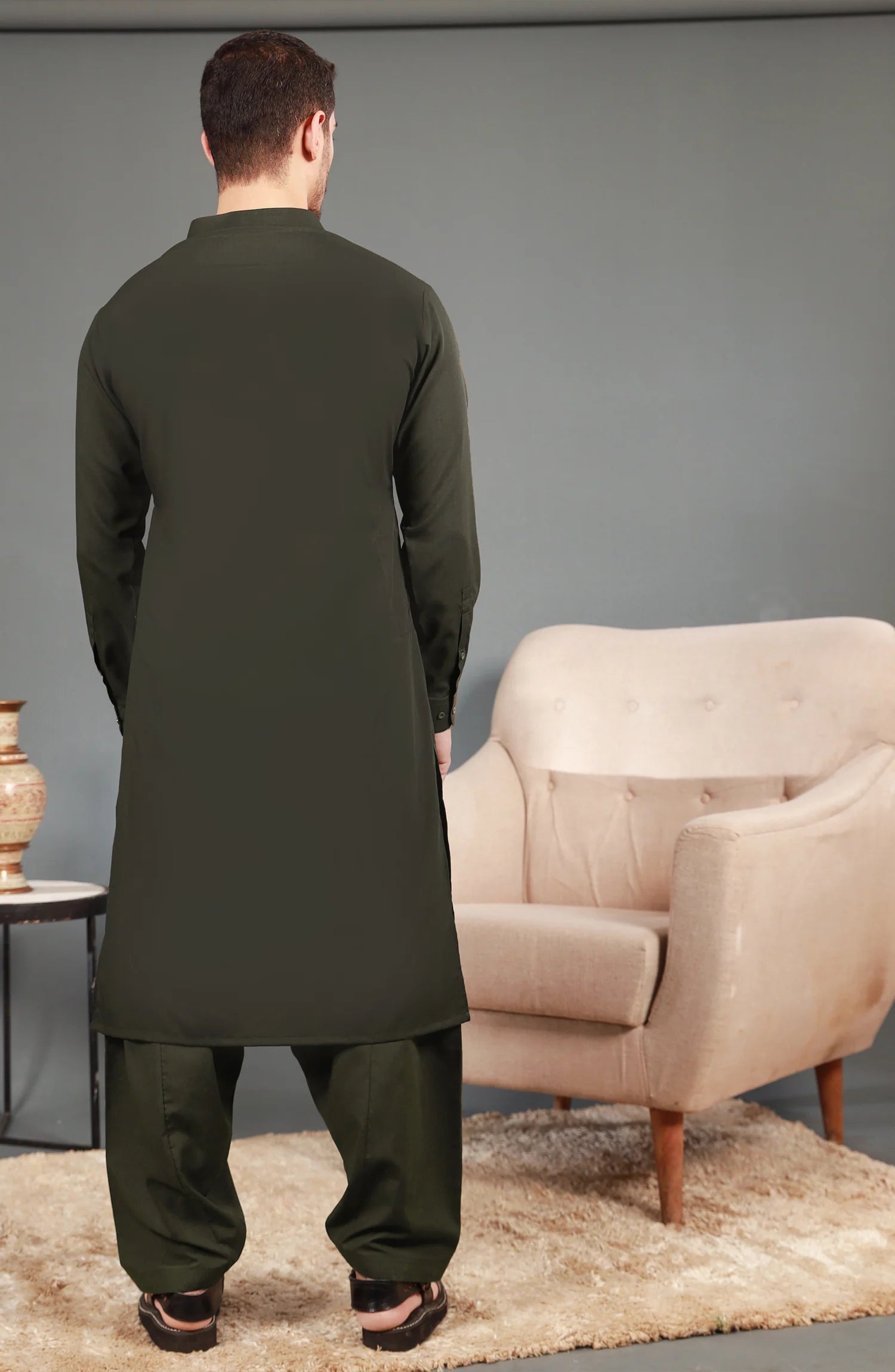 WINTER'24 MEN KAMEEZ SHALWAR OLIVE GREEN